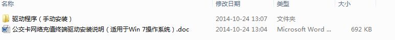 三.若系统是win7系统,则单击"适用win7操作系统"文件夹,具体安装说明请参考该文件下的"公交卡网络充值终端驱动安装说明(适用于Win 7操作系统).doc"。